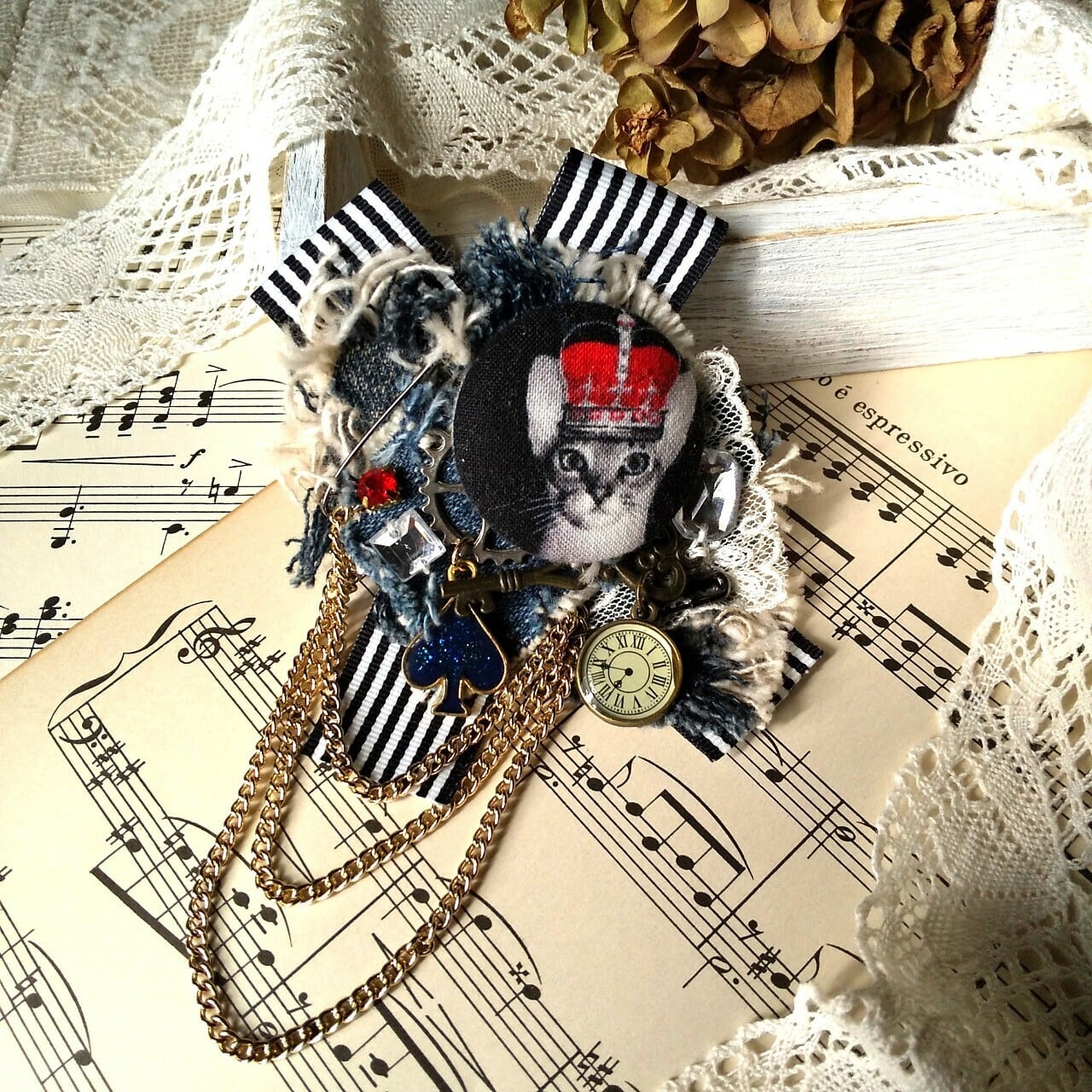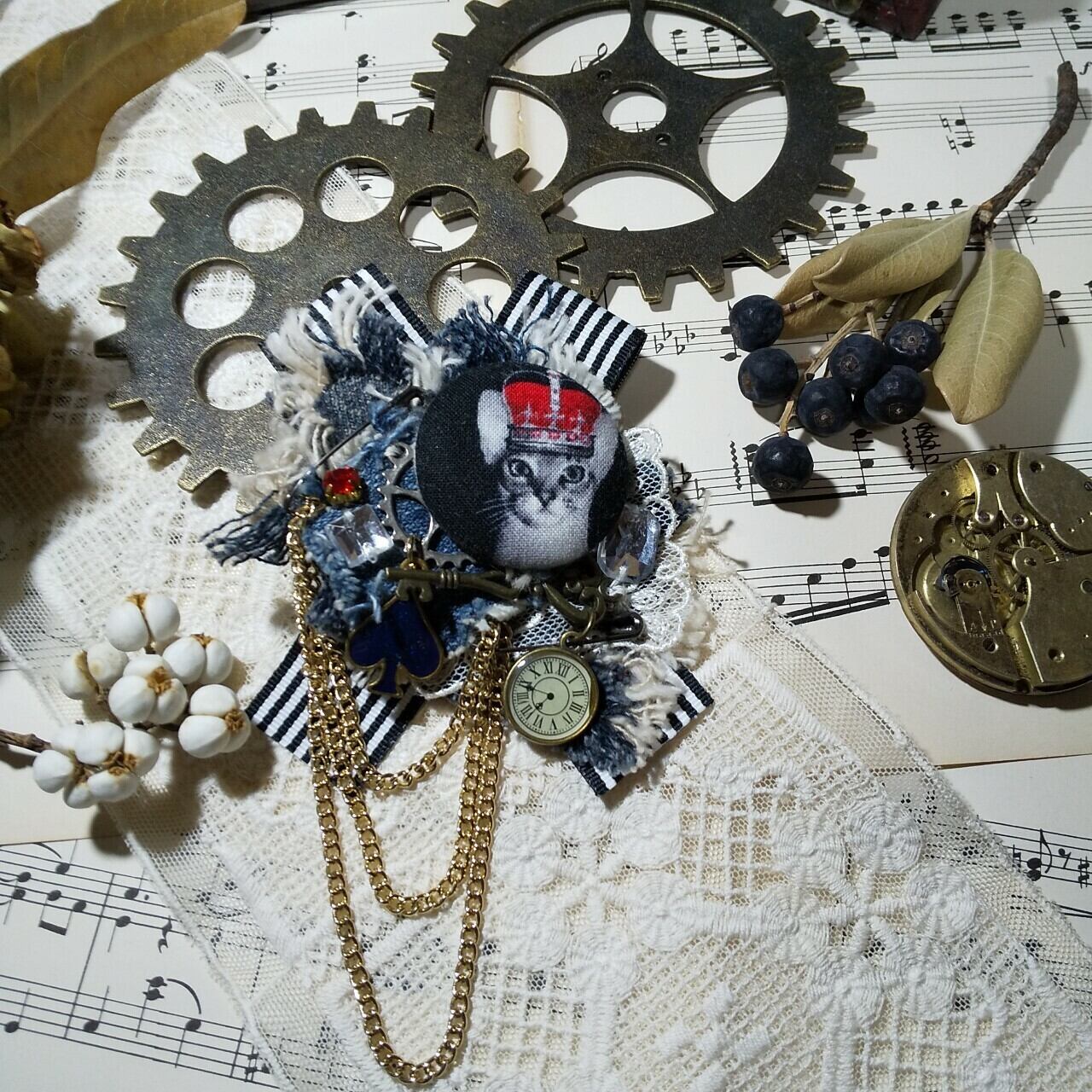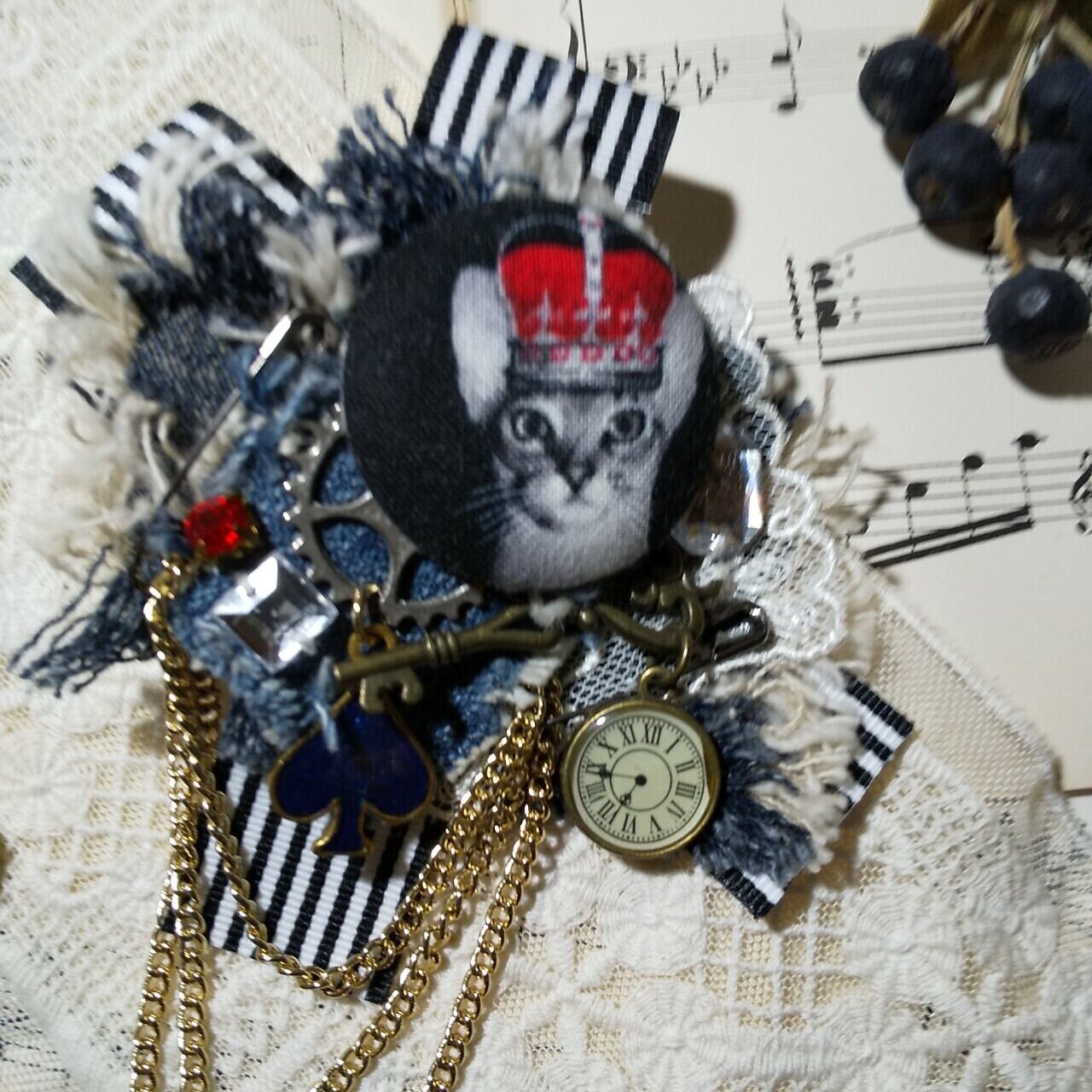 王冠を被ったオリエンタルな猫ちゃんが渋くも可愛いコサージュ